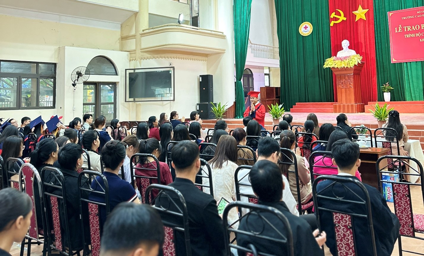 Nhà giáo Trần Thị Oanh – Trưởng phòng Đào tạo và Công tác học sinh sinh viên công bố Quyết định về việc công nhận và cấp bằng tốt nghiệp cho sinh viên trình độ cao đẳng, hệ chính quy – khoá 2022 – 2025. Đánh dấu một cột mốc quan trọng trong hành trình học tập, rèn luyện của các em sinh viên K1 và chính thức bước sang chặng đường mới – hành trình của những người làm nghề y đầy nhân ái và trách nhiệm